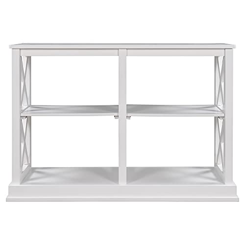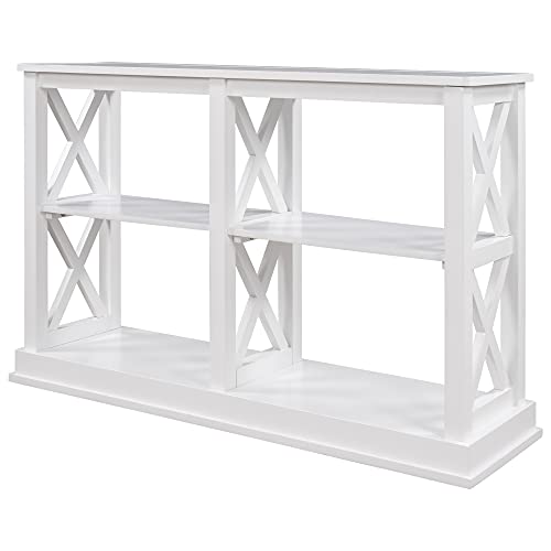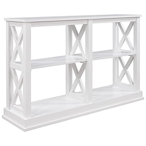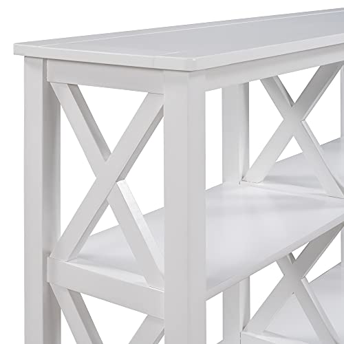Knocbel Console Table with 3-Tier Open Storage Spaces, 46.5" Chic Narrow Sofa Tables End Table with Large Storage Space and X Legs for Entryway Living Room, Pine Wood Frame and Legs with MDF Panels