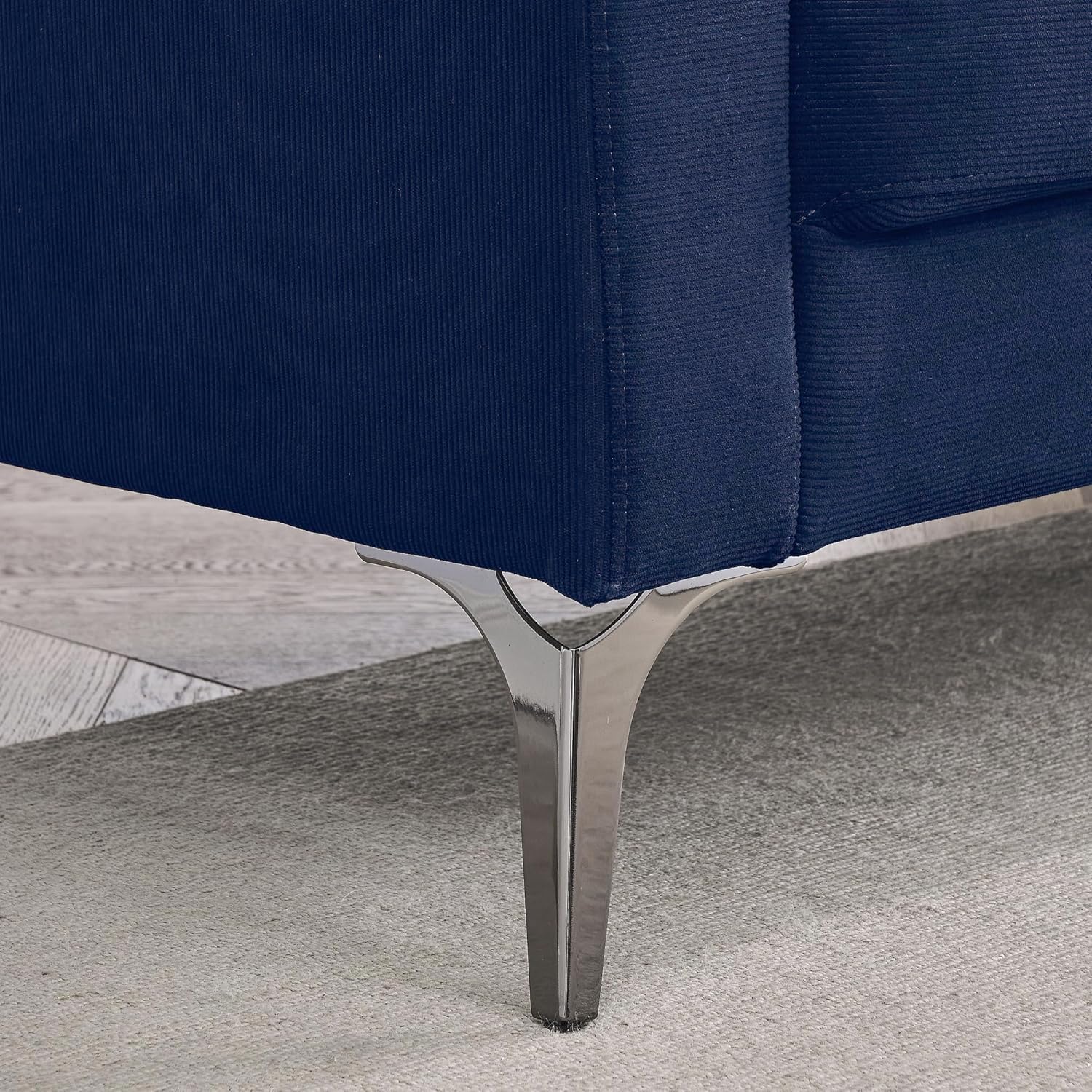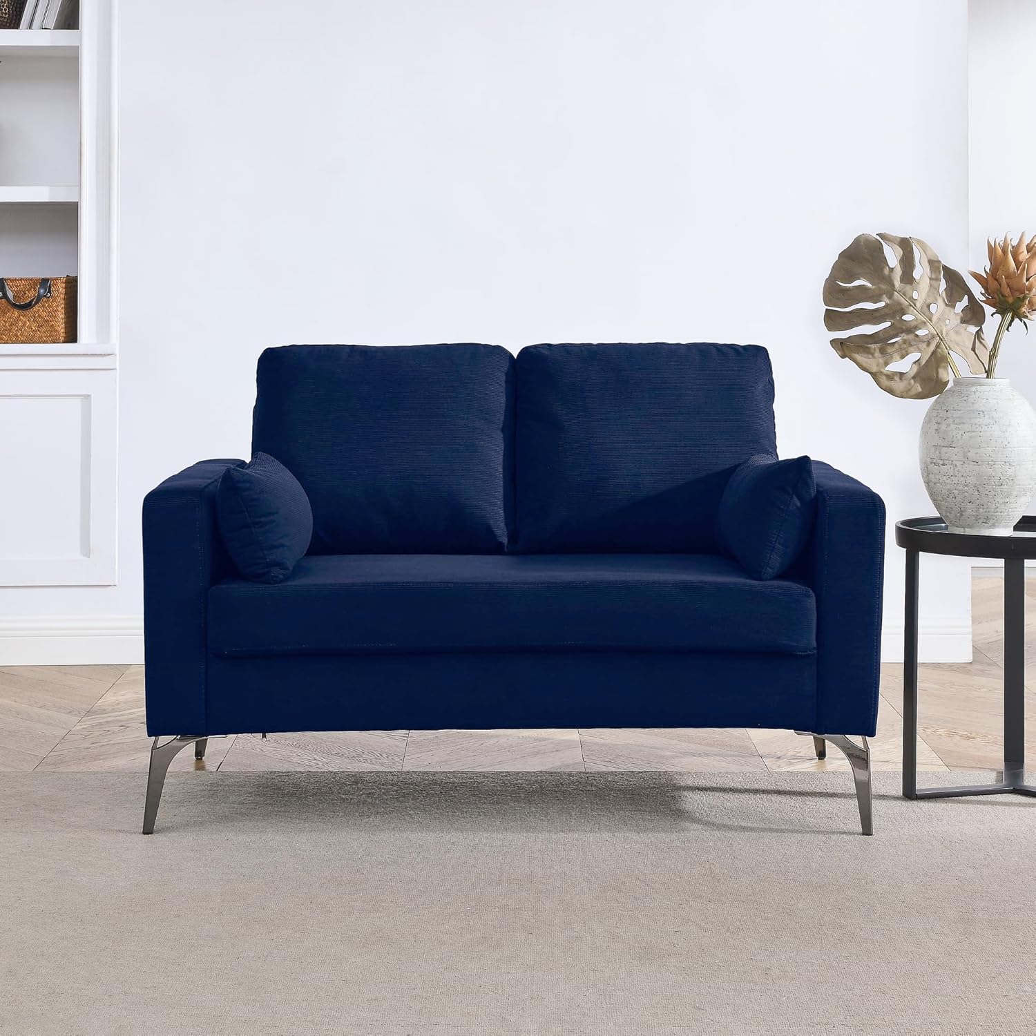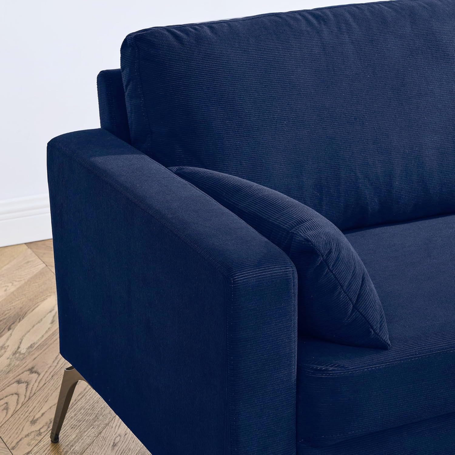 Modern Minimalist Loveseat Living Room Sofa Corduroy Navy, Square Arms, Tight Back, Two Small Pillows