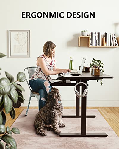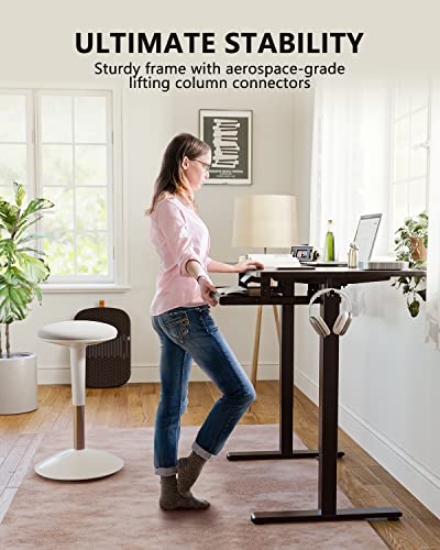 Cubiker Electric Standing Desk, 48 x 24 Inches Height Adjustable with Keyboard Tray, Ergonomic Workstation for Home Office, White Frame/Light Rustic Brown Top