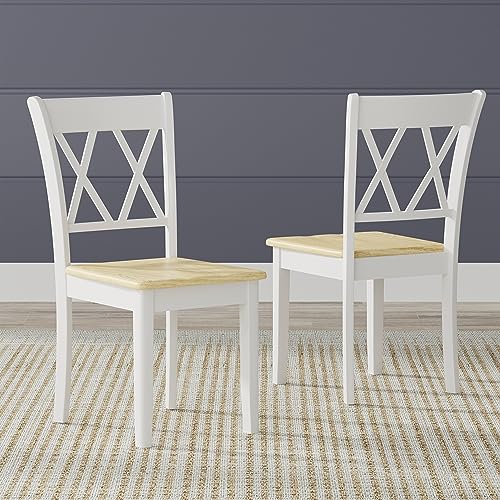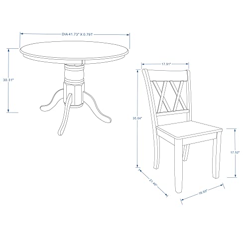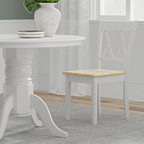 Glenwillow Home 5-PC - 42" Round Pedestal Dining Table + Double X-Back Dining Chairs Dining Set in White/Natural