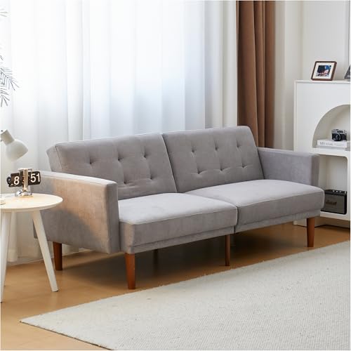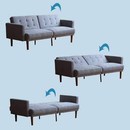 76'' Futon Sofa Bed, Convertible Sleeper Couch Bed, 3 Seater Sleeper Sofa with adjustable backrest, Loveseat Sofa, Futon Couches for living room, Dark Grey Fabric