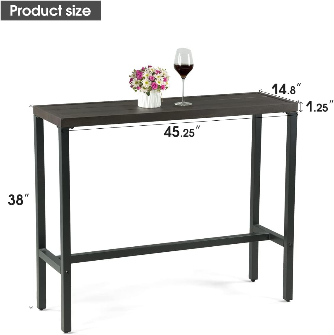 45 inch Wood-like Top Patio Bar Height Table Outdoor High Table Narrow