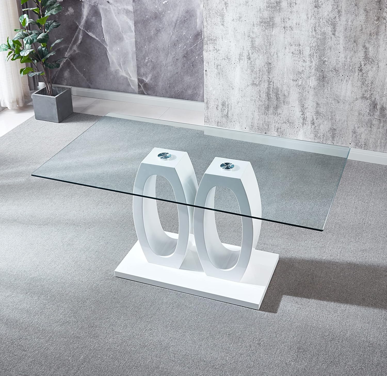 Contemporary Double Pedestal Dining Table, Tempered Glass Top with MDF Base W1311S00010