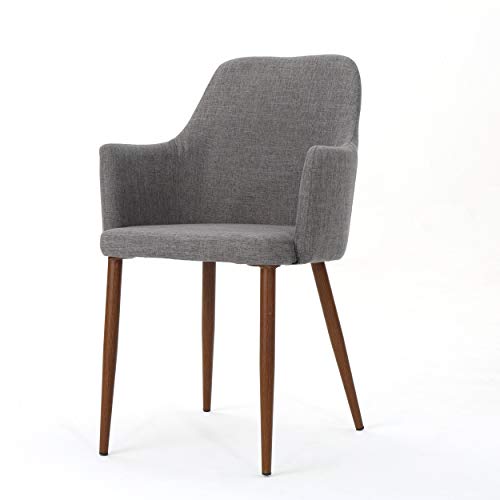 Christopher Knight Home Raina Mid-Century Modern Fabric Dining Chairs with Wood Finished Metal Legs, 2-Pcs Set, Light Grey / Dark Brown