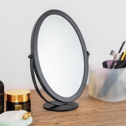 Vanity Makeup Mirror Oval Mirror Table Style Bedroom Desk Adjustable Iron Makeup Mirror Cute Simple Dressing Mirror Table Desk Vanity Makeup Mirror(Color:White)