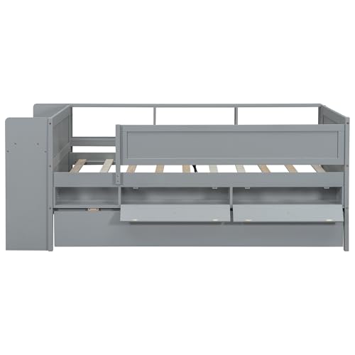 Modern Wood Daybed with 2 Drawers, Multifunctional Sofa Bed with Storage Shelf and USB Charging Ports,No Box Spring Required (White, Full)
