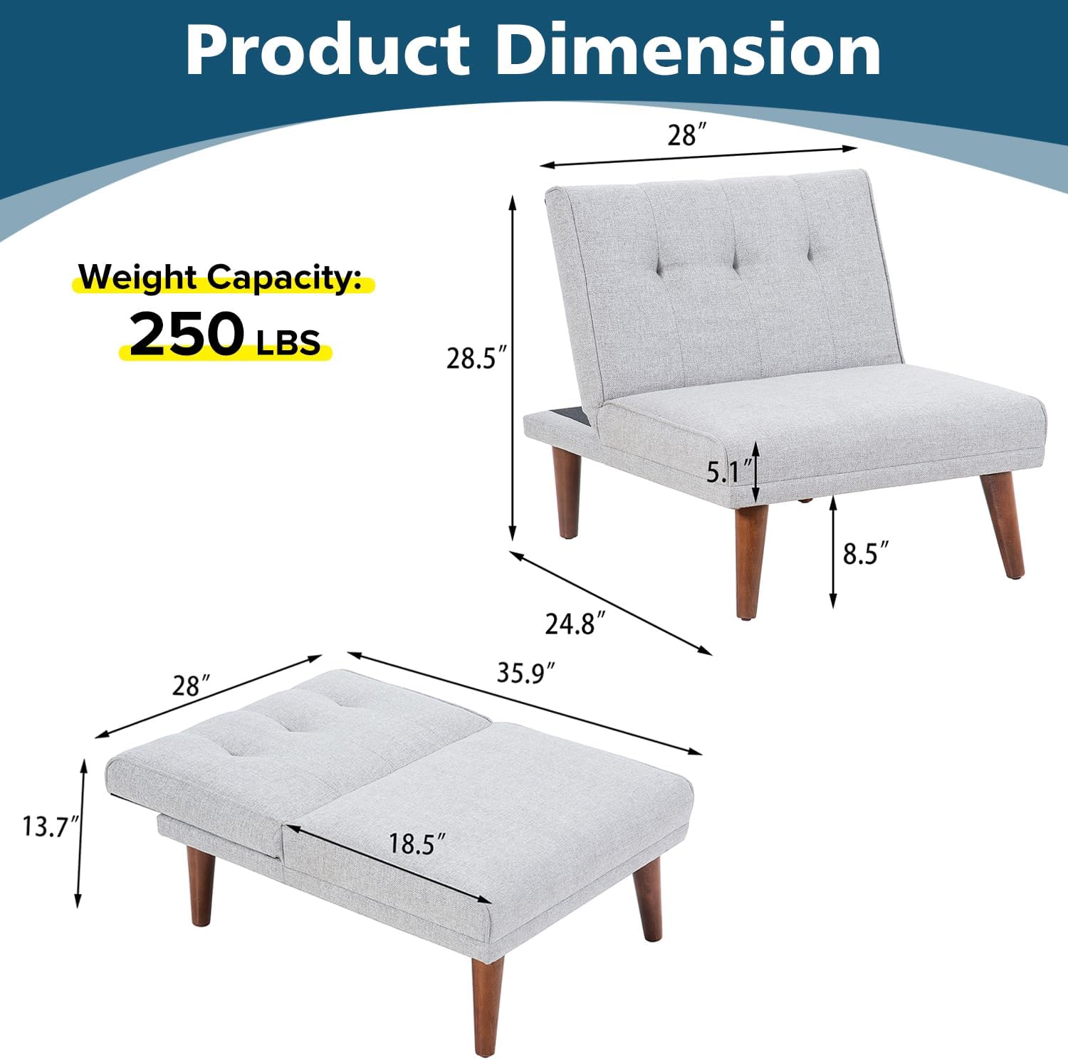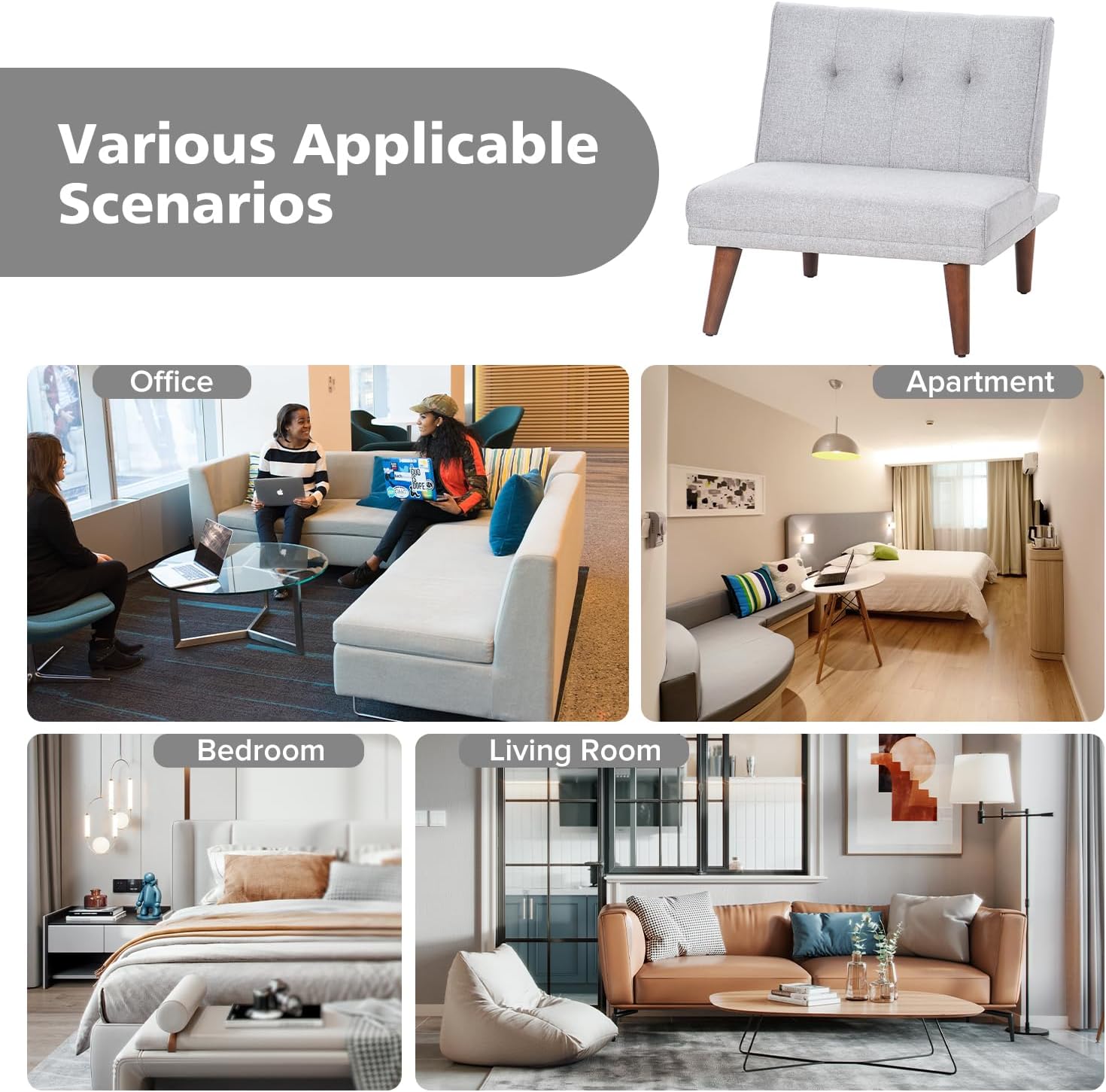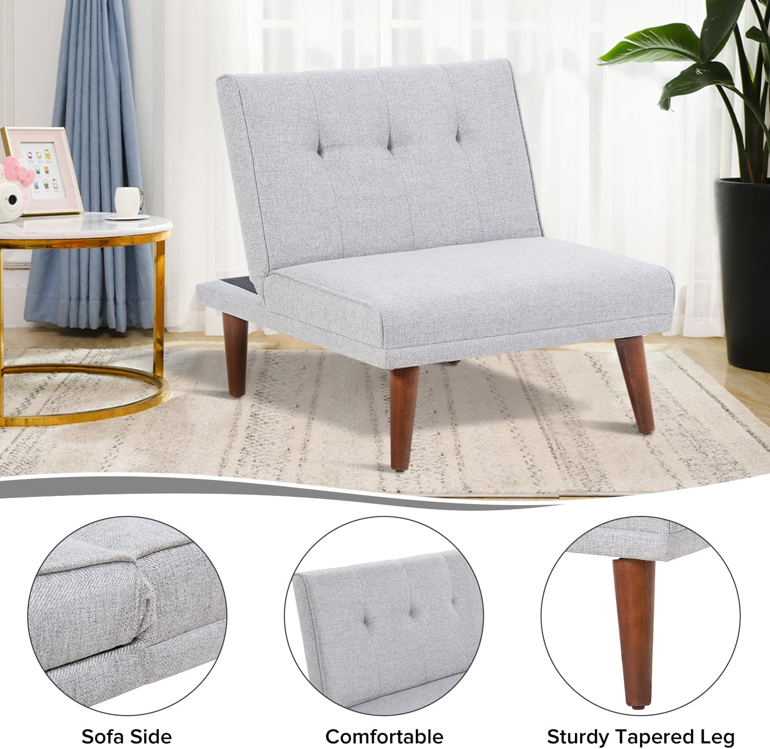 Comfy Mini Couches, Small Recliner Futon Chair with Adjustable Backrest, Armless Living Room Couch for Small Space,Bedroom,Home,Off White