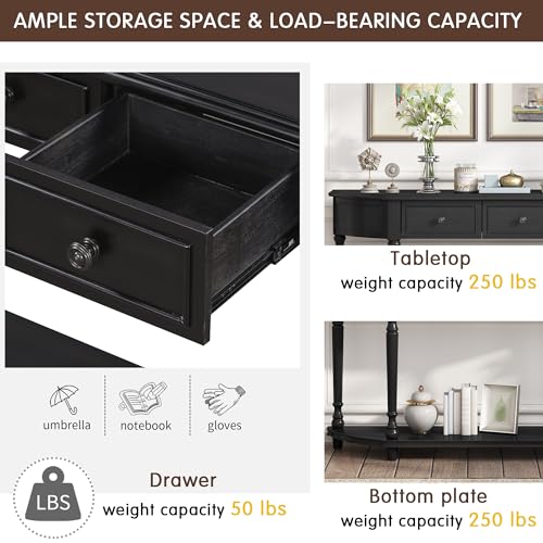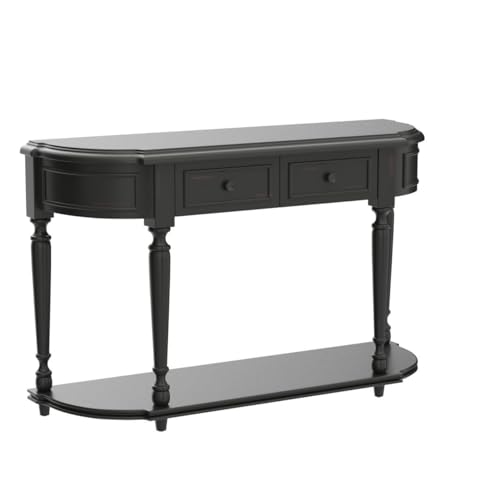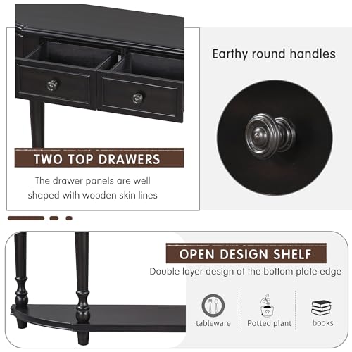 P PURLOVE Retro Circular Curved Console Table Sofa Table Entryway Table with 4 Drawers and Bottom Shelf for Entryway Hallway Ancent Style Sideboard Table with Storage
