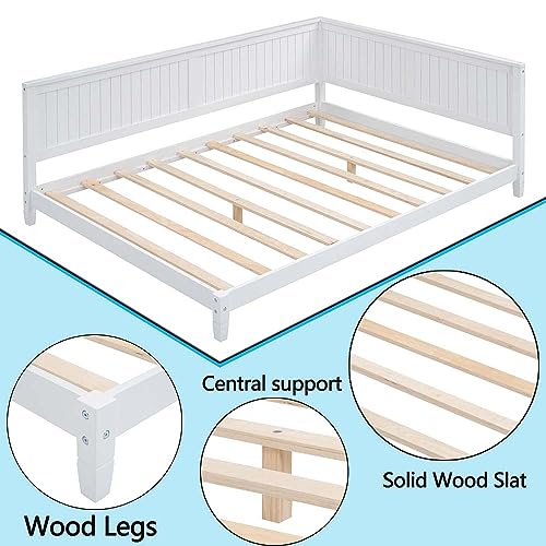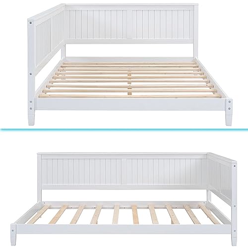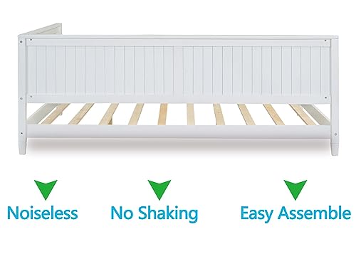 Wood Twin Daybed Frame,Day Bed Frames with Solid Wood Slat Support, Low Profile Platform Sofa Bed with Arm and Back for Toddlers Kids Teens Adults Easy Assemble (Twin, Grey)