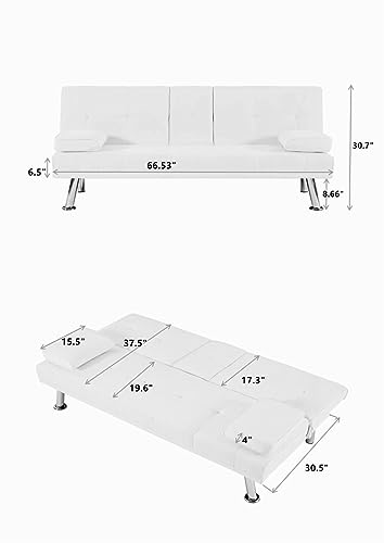 Couch Futon Sofa Bed with 2 Cup Holders, 3-Position Futon Sofa Bed with Cup Holders and Removable Armrests Upgrade Your Guest Room with Our Stylish and Comfortable Futon Sofa Bed,Beige White