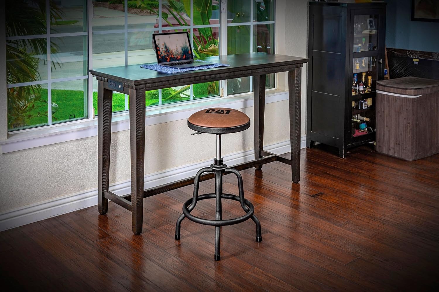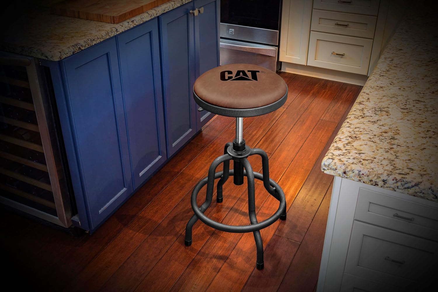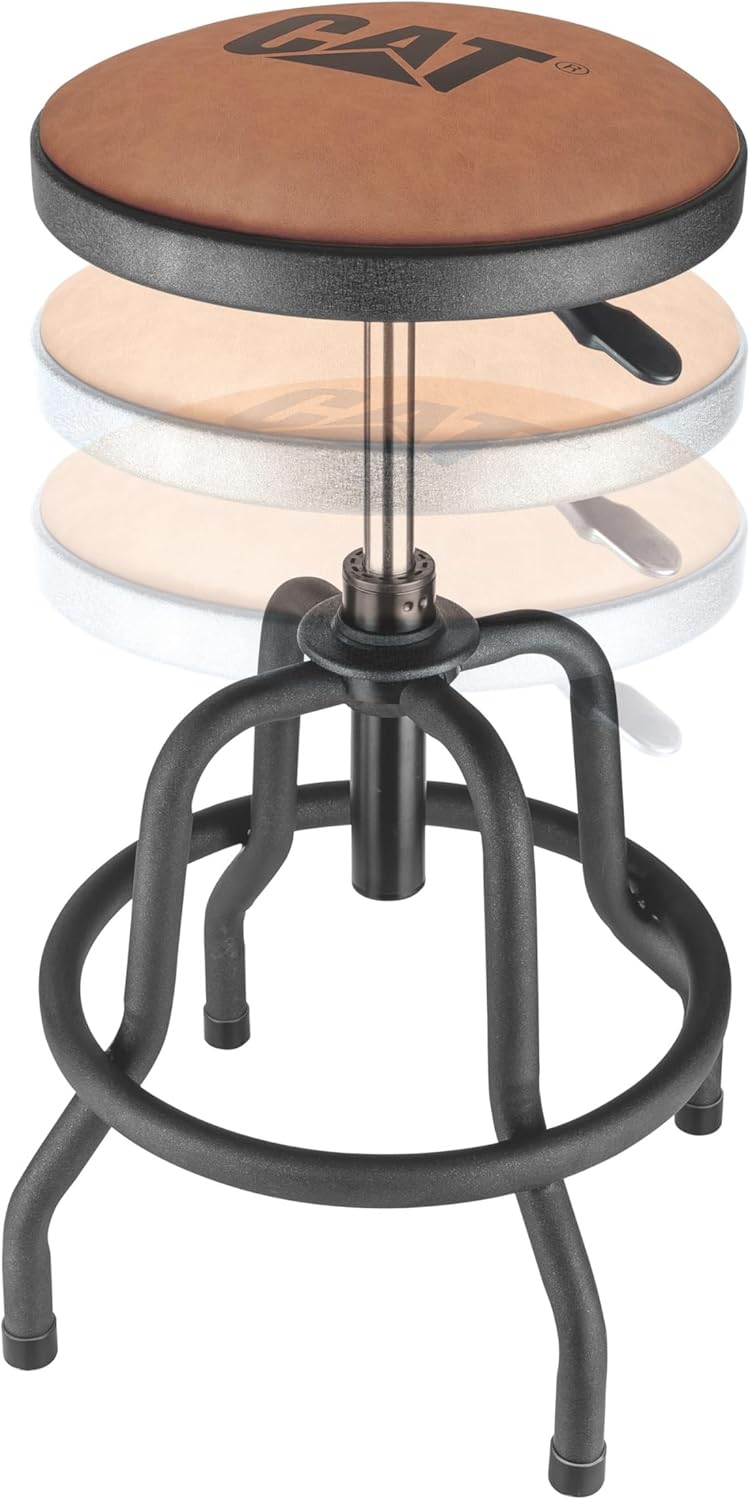 Cat Rustic Designer Shop Stool, Faux-Leather Seat Cushion, Adjustable Height - Brown Black 980841ECE