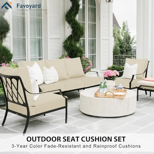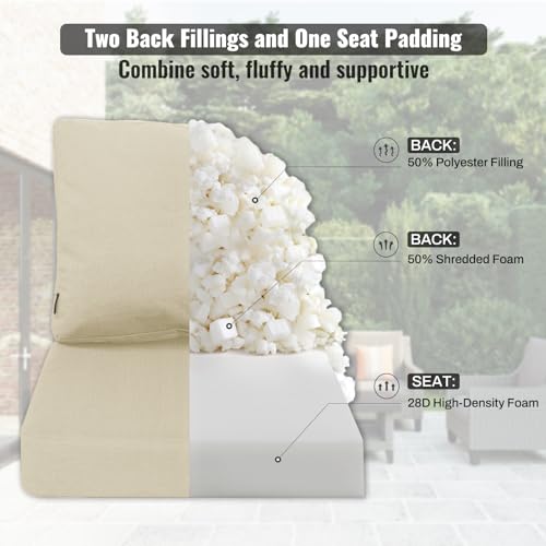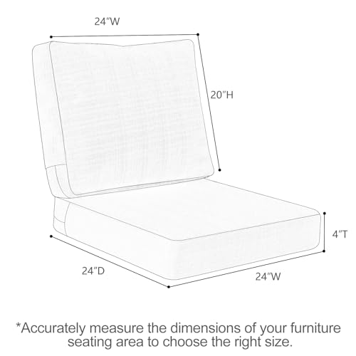 Favoyard Deep Seat Patio Cushions 24 × 24 inch Rainproof & Fadeness Furniture Cushion Set for Outdoor Chair Couch with Polyester-linen Fabric & Removable Cover, Hidden Zipper and Adjustment Staps