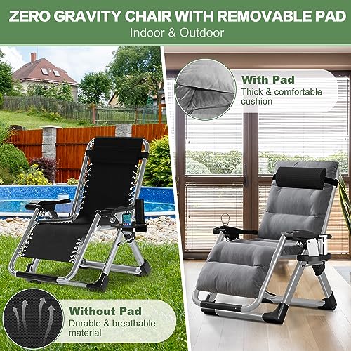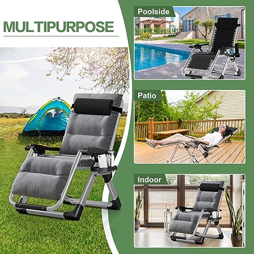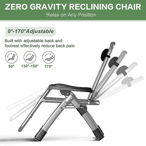 Zero Gravity Chair Reclining Lounge Chair Patio Chairs, Adjustable Lawn Recliner Folding Lounge Recliners with Removable Cushion, Headrest & Cup Holder, Reclining Chair for Indoor and Outdoor