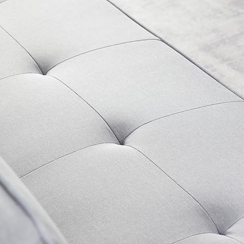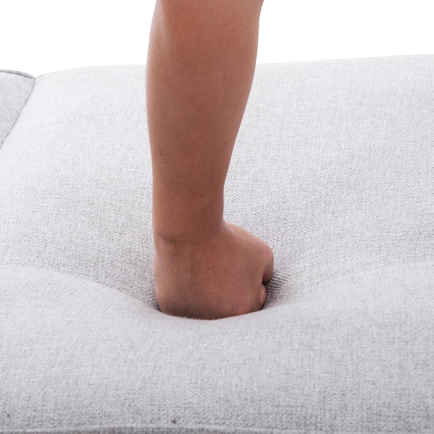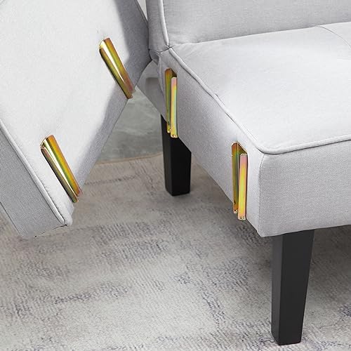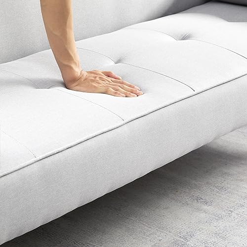 Futon Couch Sofa Bed with 2 Bolster Pillows Breathable Linen Touch Fabric Futon Couch Sofa Bed with Removable Armrests and Adjustable Positions,White