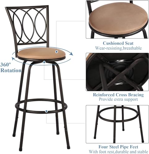 VECELO Barstools, Adjustable Counter Stools,Steel Bistro Pub Chairs,Bar Stools with 360 Degree Swivel Cushion Seat, Straight Line Backrest,Set of 4