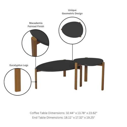 Manhattan Comfort Gales Mid Century Modern End Table with Oval Triangle Shaped Top, Accent Furniture for Living Room Made from Solid Eucalyptus Wood, Matte White