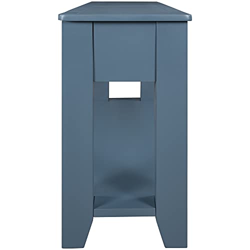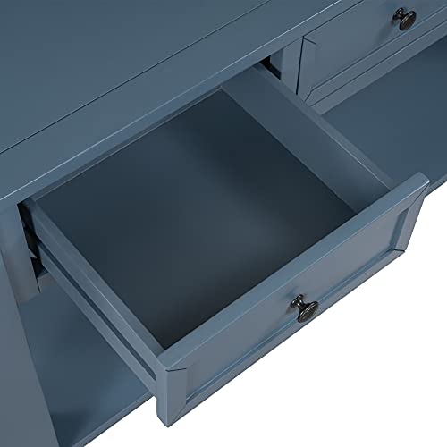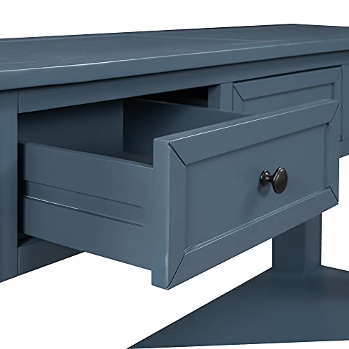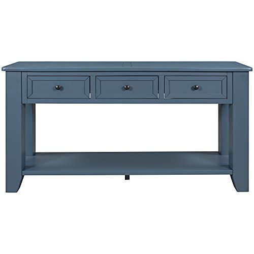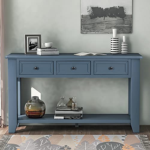Retro Design Console Table with 2 Open Shelves and 3 Drawers Pine Solid Wood Frame and Legs Circular Handle, 50.00", Espresso