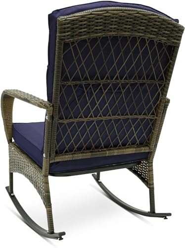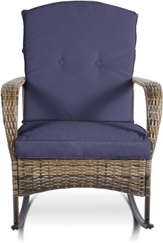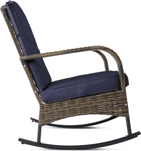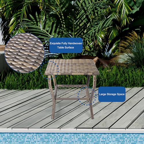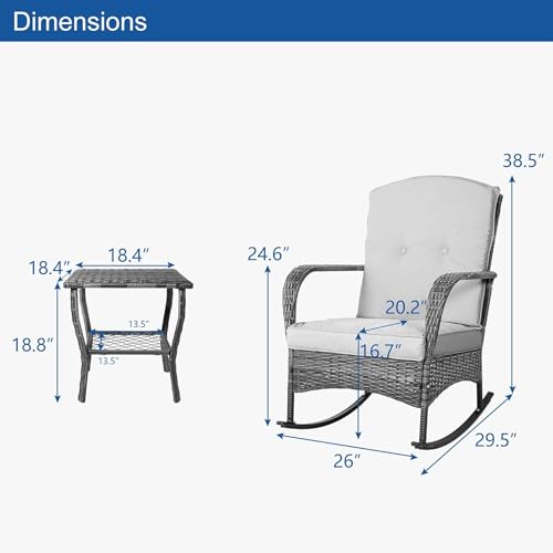 3-Piece Outdoor Furniture Set, Patio Conversation Chair, Wicker Rocking Chair with Side Table for Porch, Garden, Poolside & Deck, Carrot