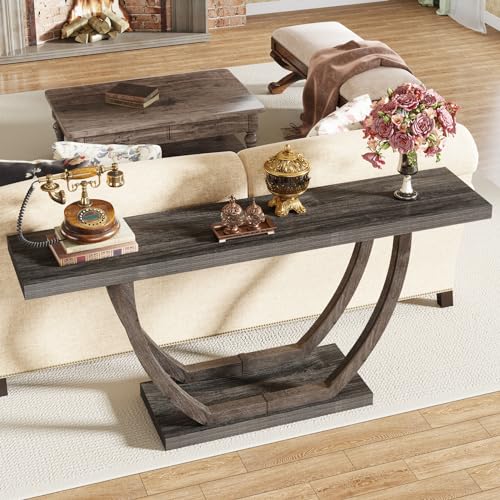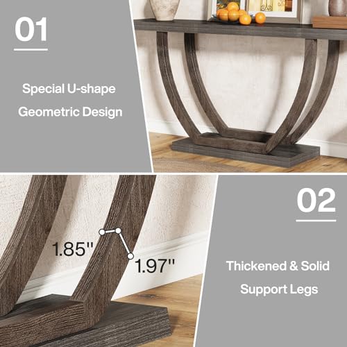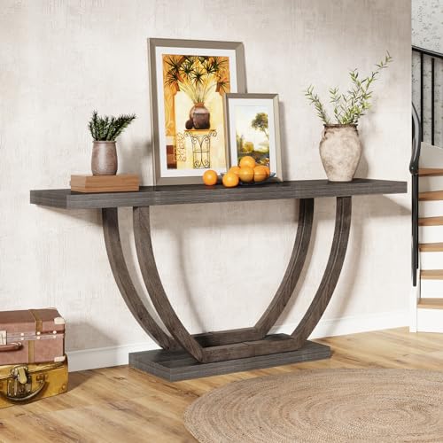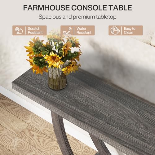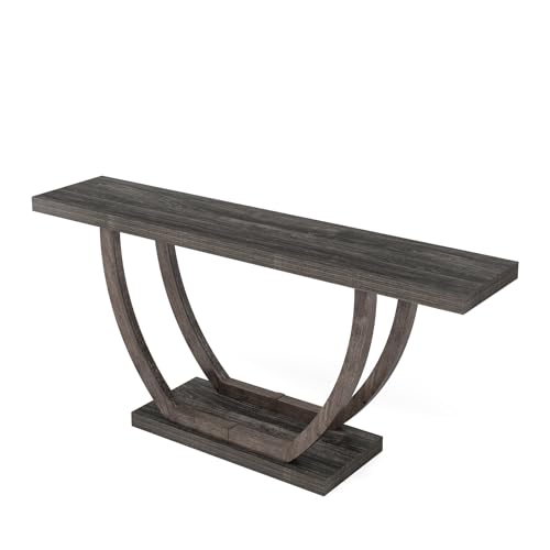 Tribesigns Console Table for Entryway: 63 Inches Farmhouse Wood Entry Foyer Table for Entrance, Narrow Long Sofa Table Behind Couch with Metal Legs for Hallway, Living Room, Grey