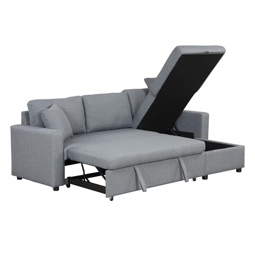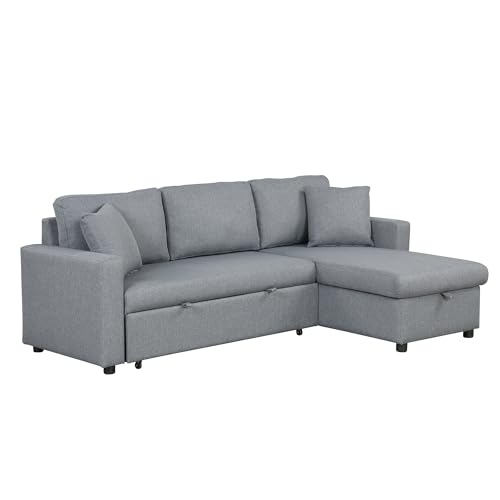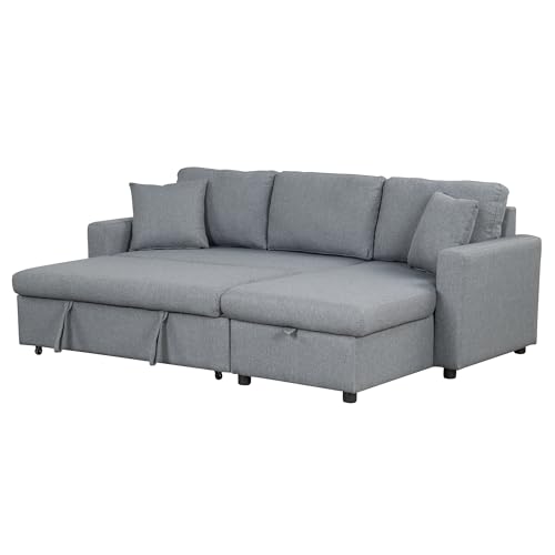 108.3" Sectional Sofa Pull Out Sleeper Couch Bed Modern Upholstered Sofa & Couch Corner Sofa Sofabed Sleeper Sofa Bed for Living Room Bedroom Home Office Apartment Lounge Beige