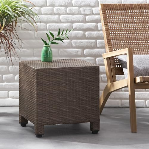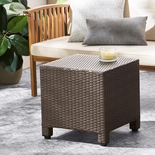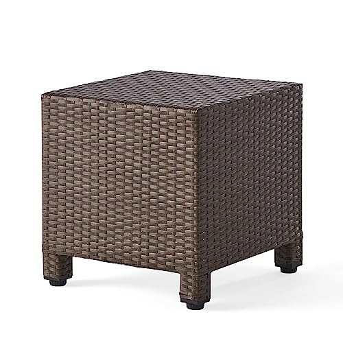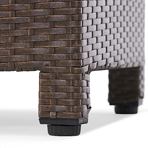 Wicker Rattan Side Table Patio Wicker Table with Lid, 13 Gallon PE Rattan Deck Box Patio Storage Chest, Wicker Storage Box Outdoor Rattan Coffee Table End Table for Patio Porch Lawn (Brown2)