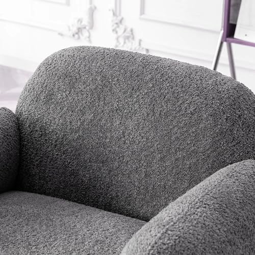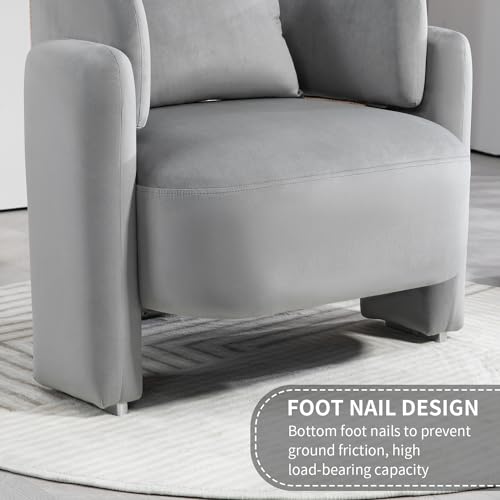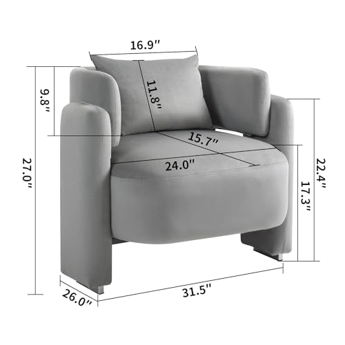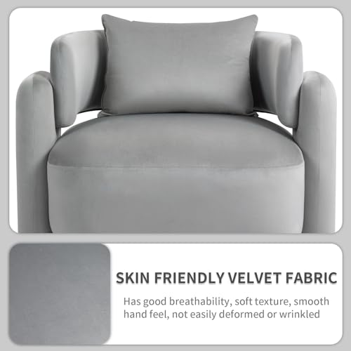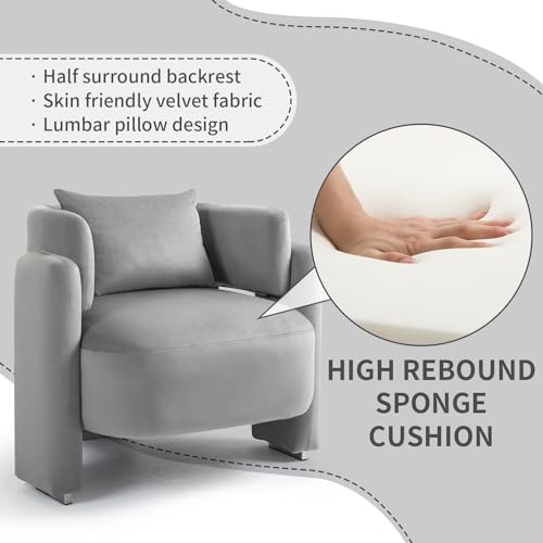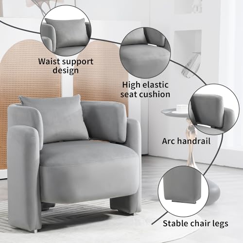 Modern Accent Chair for Living Room, Comfy Wide Single Armchair with Pillows, Wooden Frame Barrel Chairs, Velvet Reading Chair for Bedroom, Office (Grey)