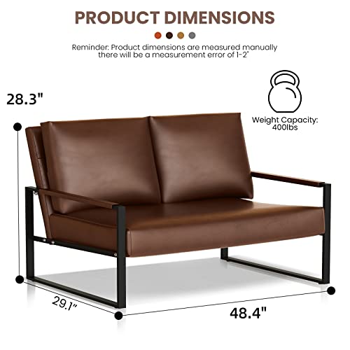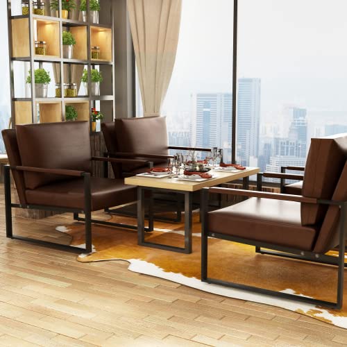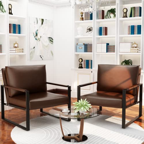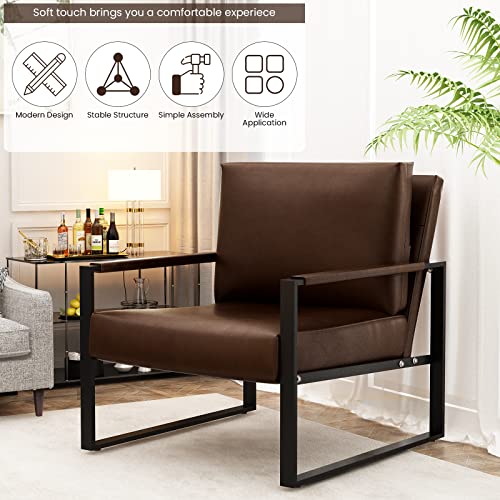 Recaceik Leather Accent Chair, Mid-Century Modern Armchair Single Sofa Chair with Pillows, Extra-Large Ergonomic Cushion, Sofa Chairs for Living Room Bedroom Waiting Room