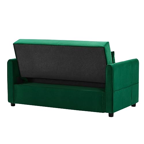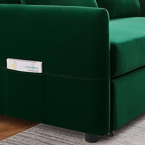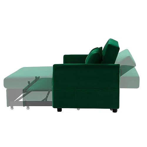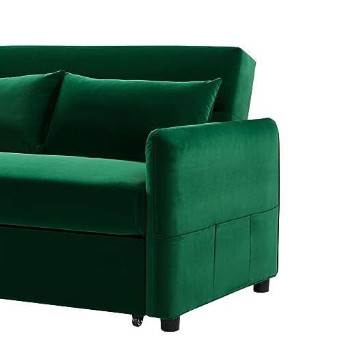 JINS&VICO Velvet Sofa Bed with Adjustable Backrest, Convertible Sleeper Sofa with 2 Lumbar Pillows, Modern Futon Sofa with Plastic Legs for Living Room, Bedroom, Office, Light Brown