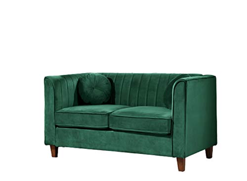 US Pride Furniture 55" Chesterfield Velvet Loveseat with Vertical Channel Tufted Backrest & Tapered Wood Legs - 2 Seater Couch for Living Room, Bedroom or Office, Midnight Black