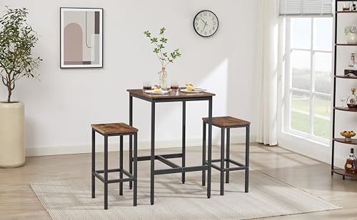 Pub High Dining Table Set 5 PCS Industrial Style Pub Table Set with 4 PU Leather Bar Chairs for Kitchen Breakfast Table Living Room Bar (Rustic Brown)