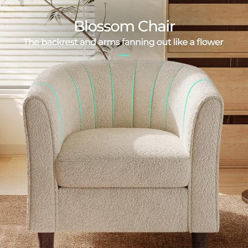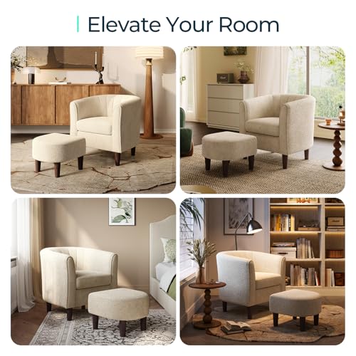 Chenille Accent Chair, Barrel Chair with Ottoman, Modern Comfy Reading Chair Armchair for Living Room Study Room Office, Orange
