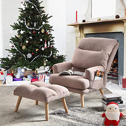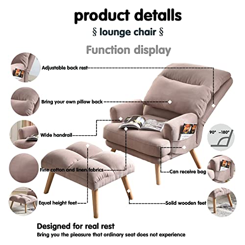 Living Room Chair,Living Room Set with Recliner Accent Chair and Ottoman with Side Bags,Pink Linen