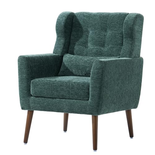 TRIPLE TREE Accent Chair, Button-Tufted Upholstered Armchair with Wooden Legs and Pillow, Modern Lounge Arm Chair with Upholstered Cushion for Living Room, Bedroom, Office, Yellow