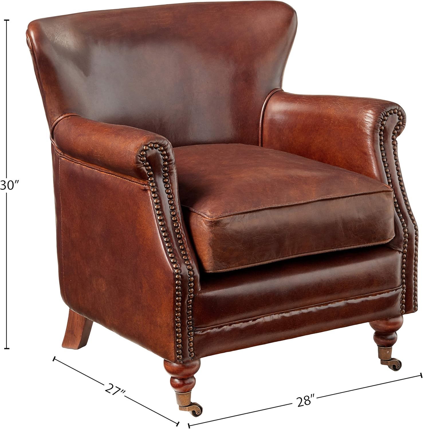 Acme Leeds Top Grain Leather Upholstery Accent Chair in Vintage Dark Brown