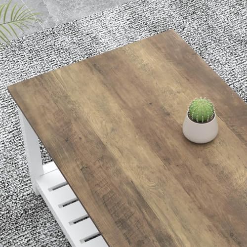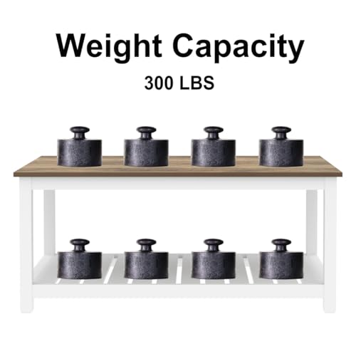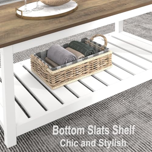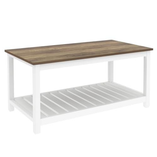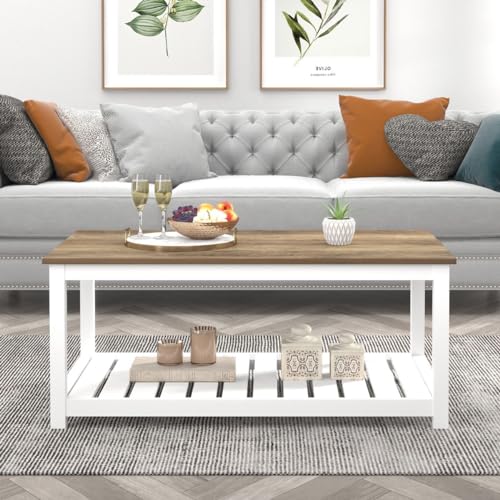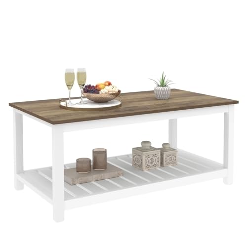 FOLUBAN Farmhouse Coffee Table, Modern Rectangle Center Table with Storage Shelf, Rustic Wood Cocktail Tea Table for Living Room, 40 Inch, White & Walnut
