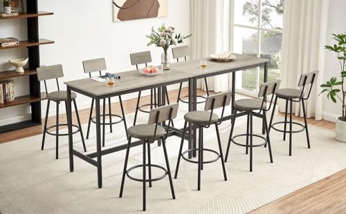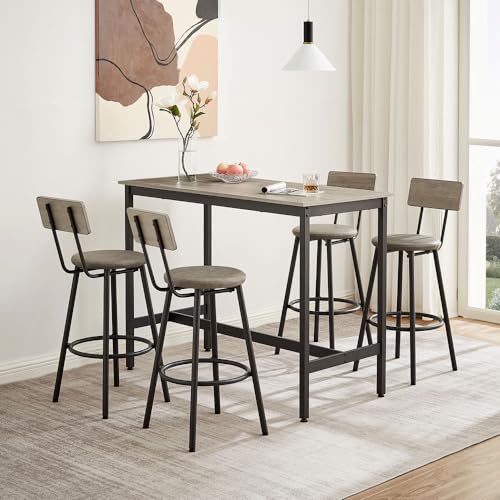 Pub High Dining Table 5 Piece Set, Industrial Style Pub Table, 4 PU Leather Bar Chairs for Kitchen Breakfast Table, Living Room, Bar, 47.2″L x 23.6" W x 35.4" H (Rustic Brown)