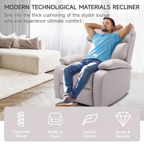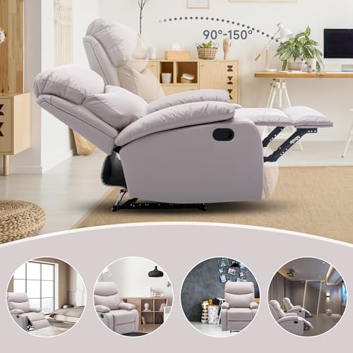 Manual Leather Recliner Chair, Small Recliner chair with Tech- leather, Lazy Boy Recliner Chair for Bedroom, Livingroom, RV, Beige
