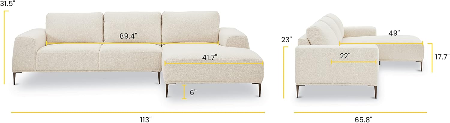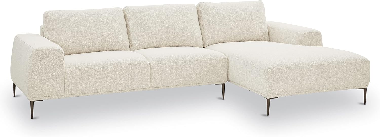 POLY & BARK Rue Right-Facing Sectional Sofa, Crema White Boucle