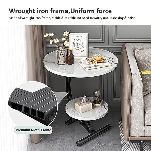 Faux Marble Top Side Table for Living Room,Luxury Marble Round End Table,Modern Small Coffee Table with C-Shaped Legs,Couch Table Bedside Table for Living Room Bedroom Furniture