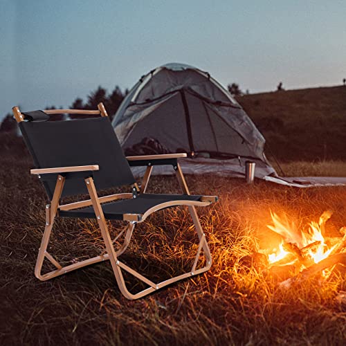 Folding Camping Chair,Portable Collapsible Fishing Chair, Ultralight Aluminum Outdoor Beach Chair with Solid Wood Armrest for Outdoor & Indoor Hiking Lawn Picnic (White Beige)