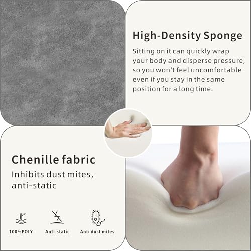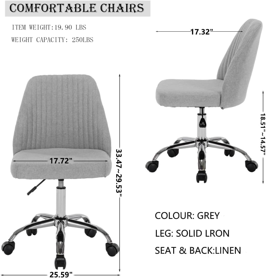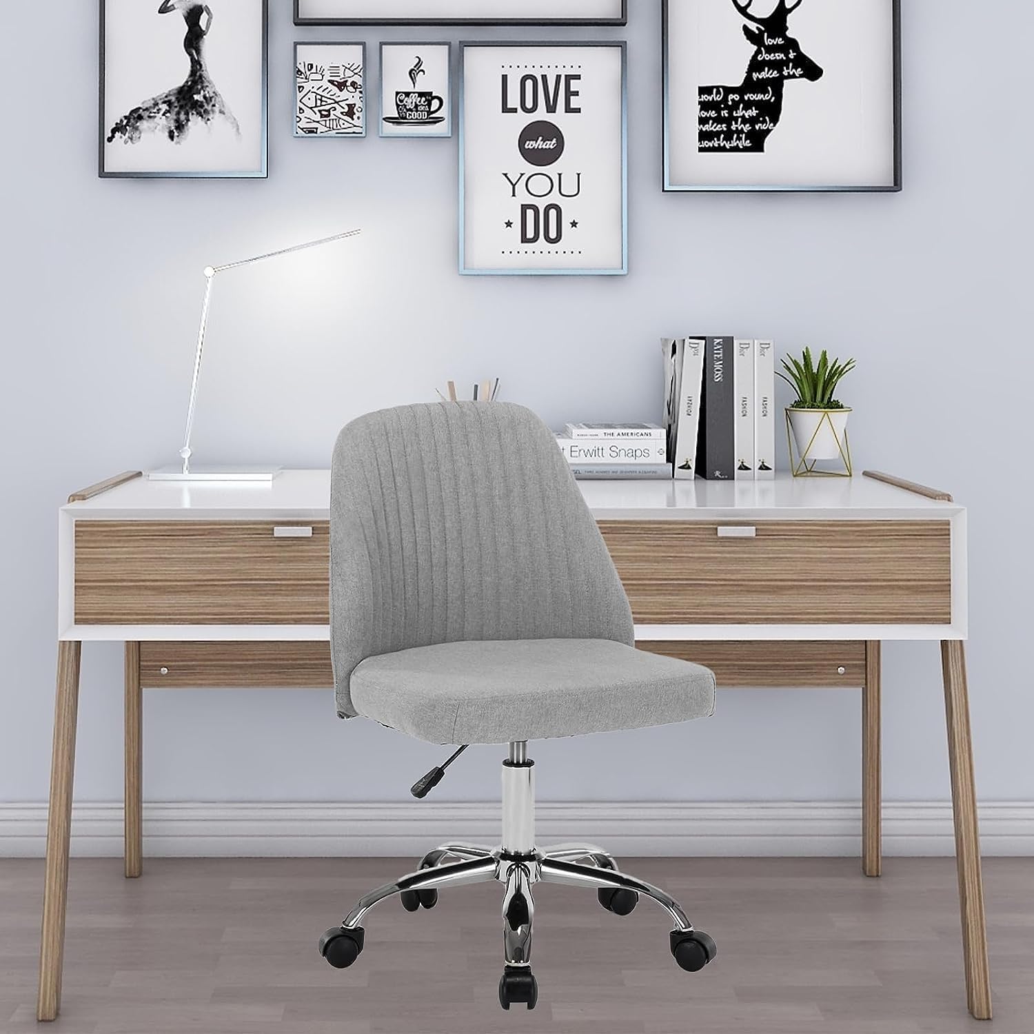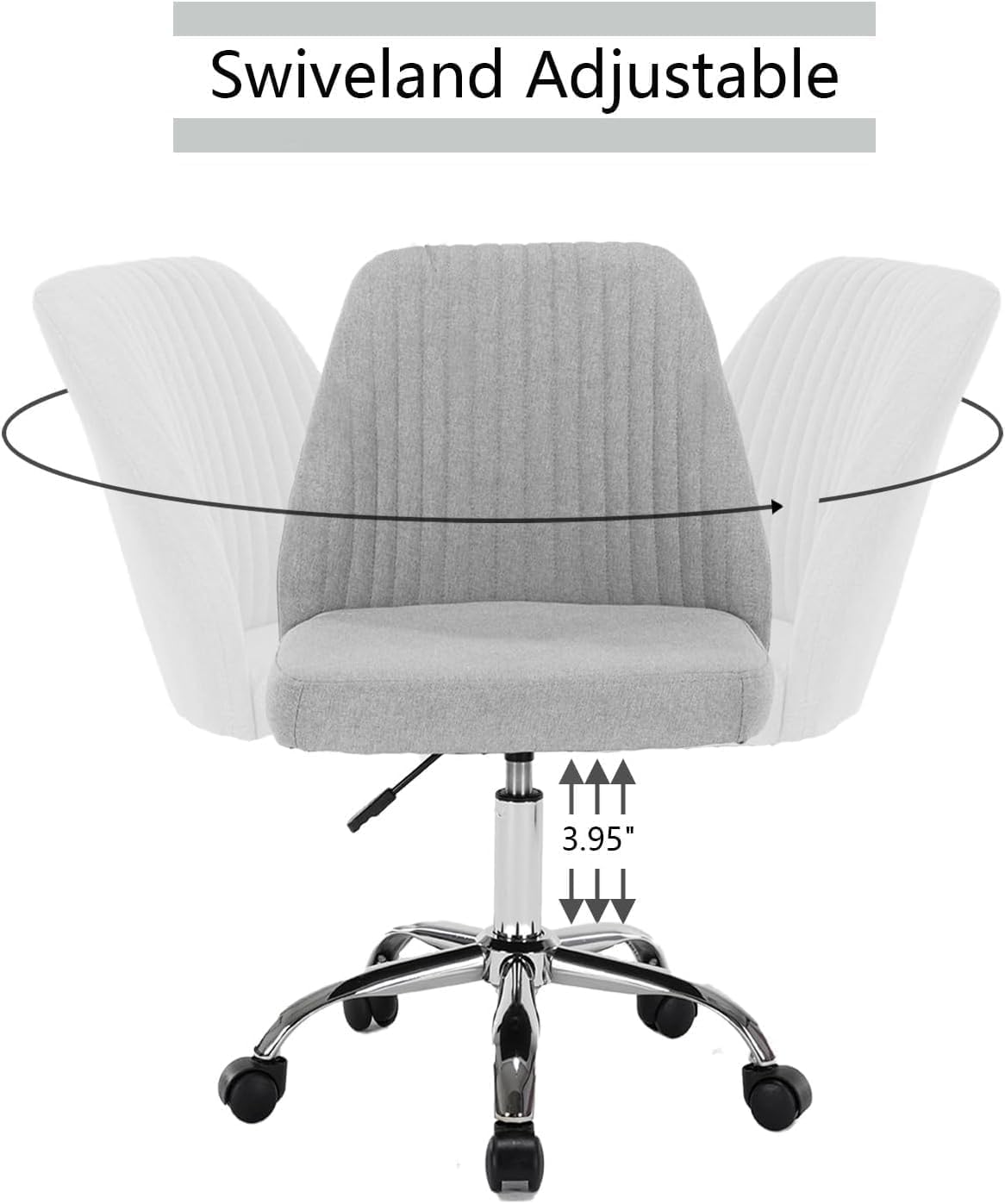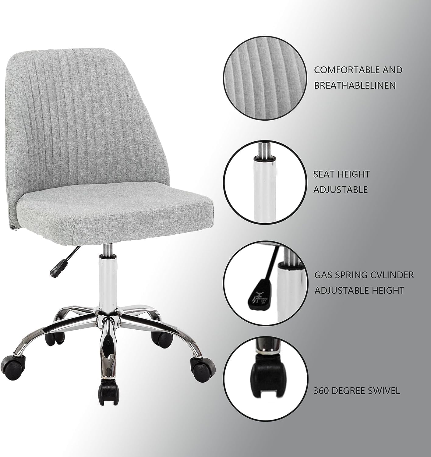 Home Office Desk Chair, Vanity Chair, Modern Adjustable Low Back Rolling Chair, Twill Upholstered Cute Office Chair, Desk Chairs with Wheels for Bedroom, Classroom, Vanity Room (Light Grey)