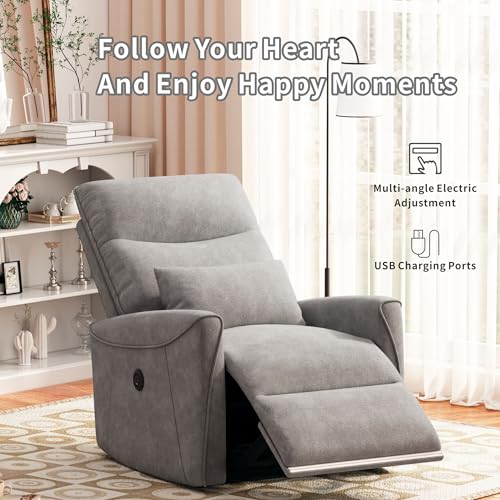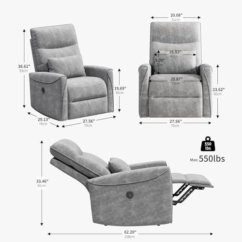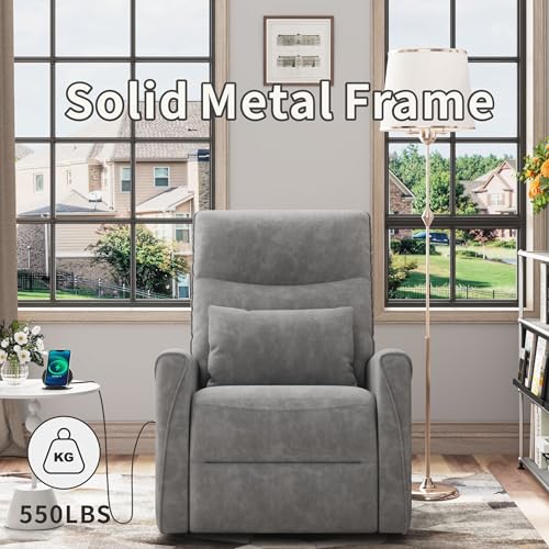 Power Recliner Chair for Adults, Reclining Sofa Chair, Adjustable Home Theater Seating Lounge with Lumbar Support, Small Recliners for Living Room with Charging Ports (Persimmon Orange)