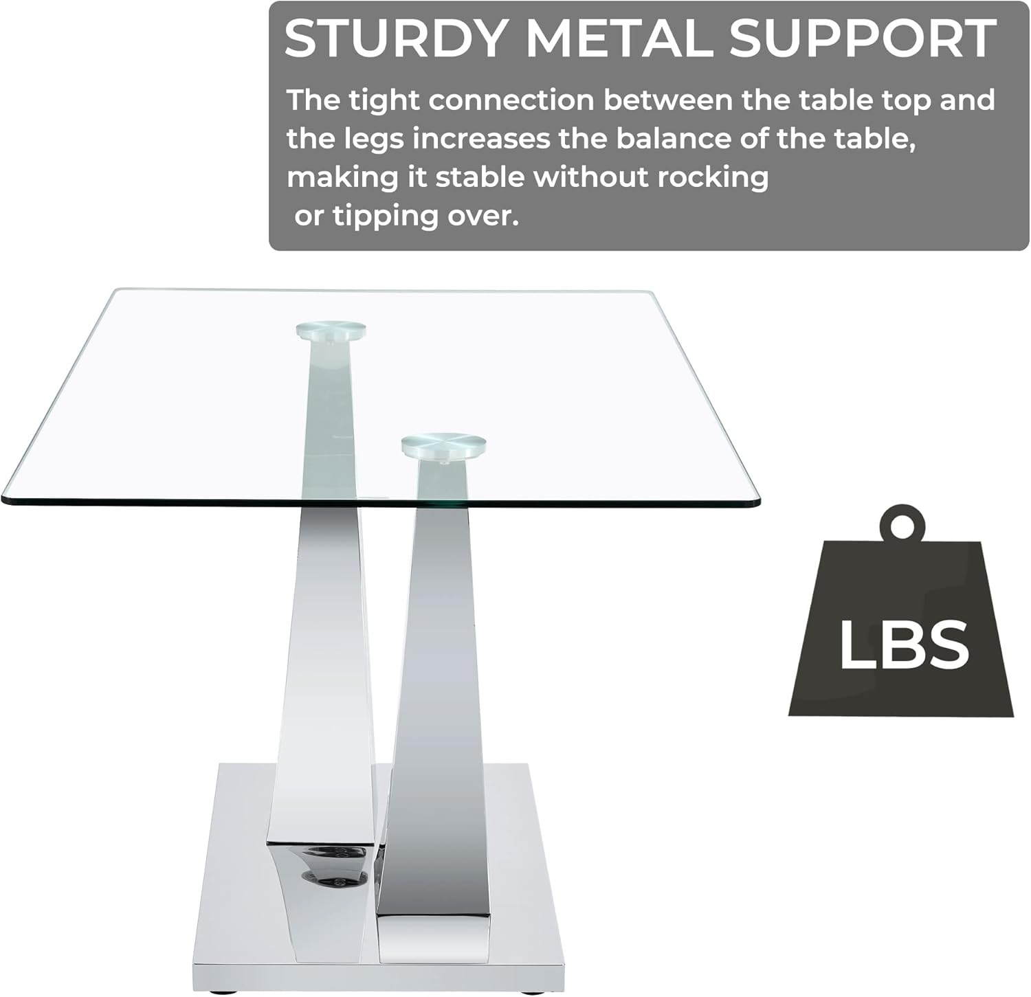 Glass Dining Table Set of 4, Dining Table and Chairs Set, Modern Dining Room Furniture Set, 51 inch Tempered Glass Table top, for Kitchen, Dining Room