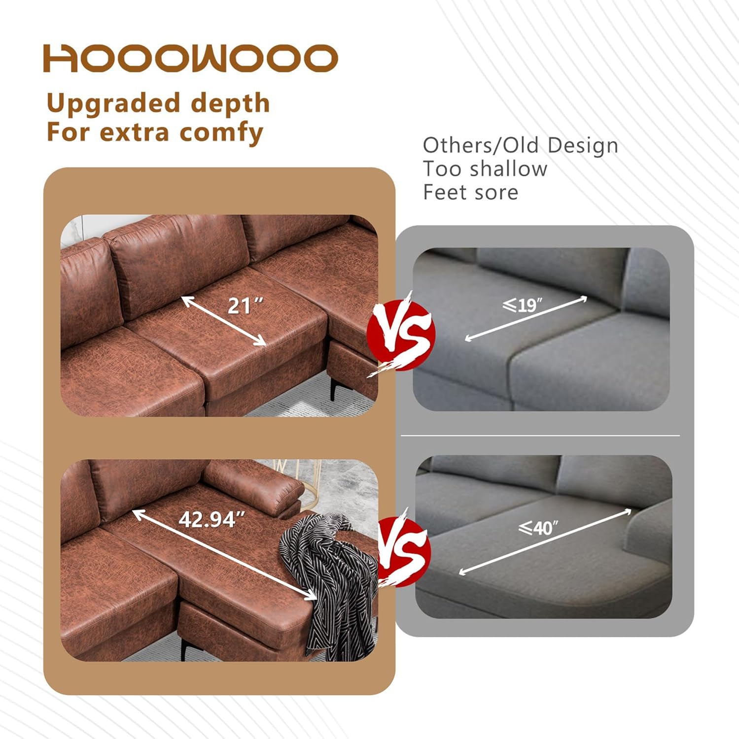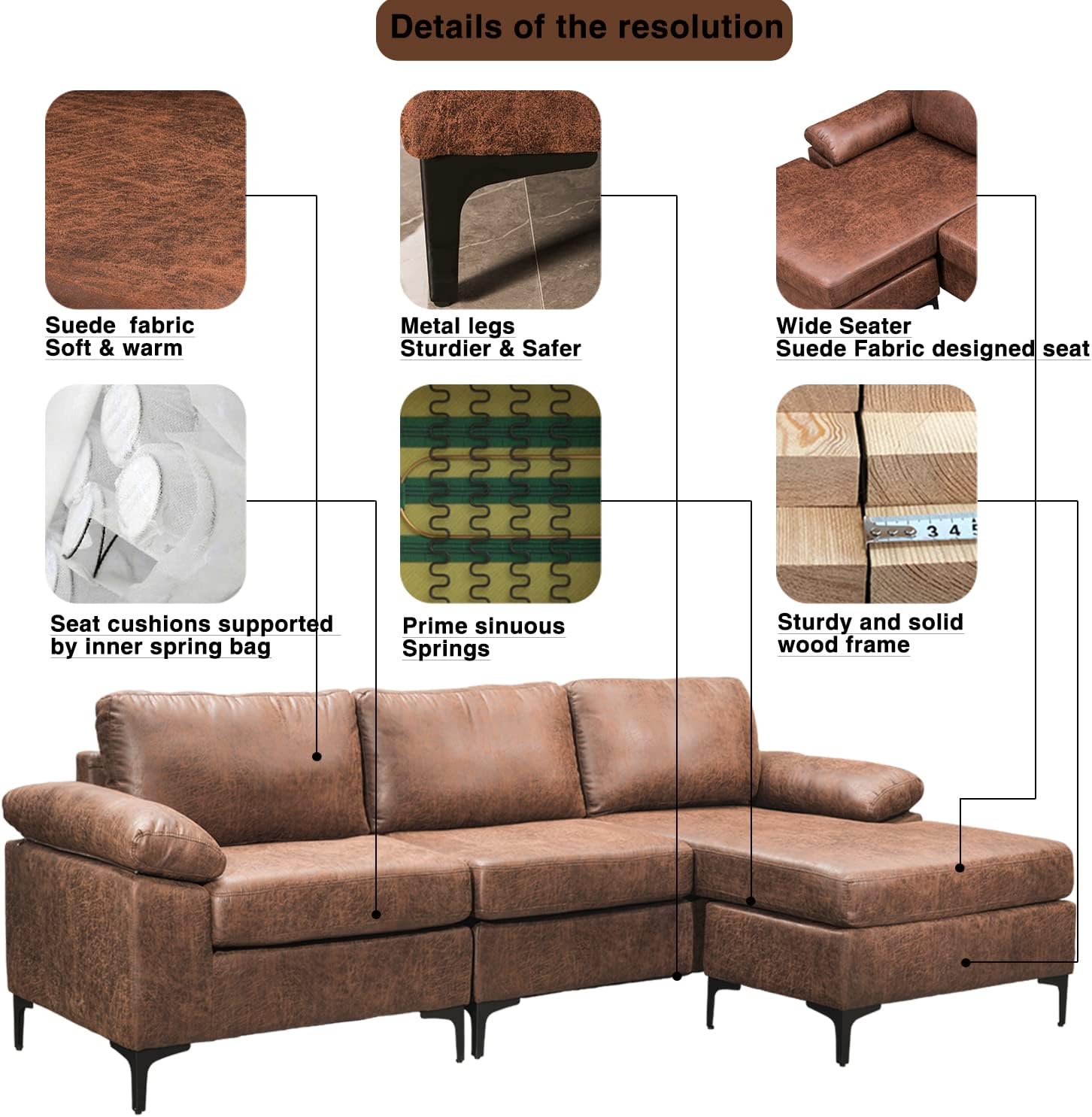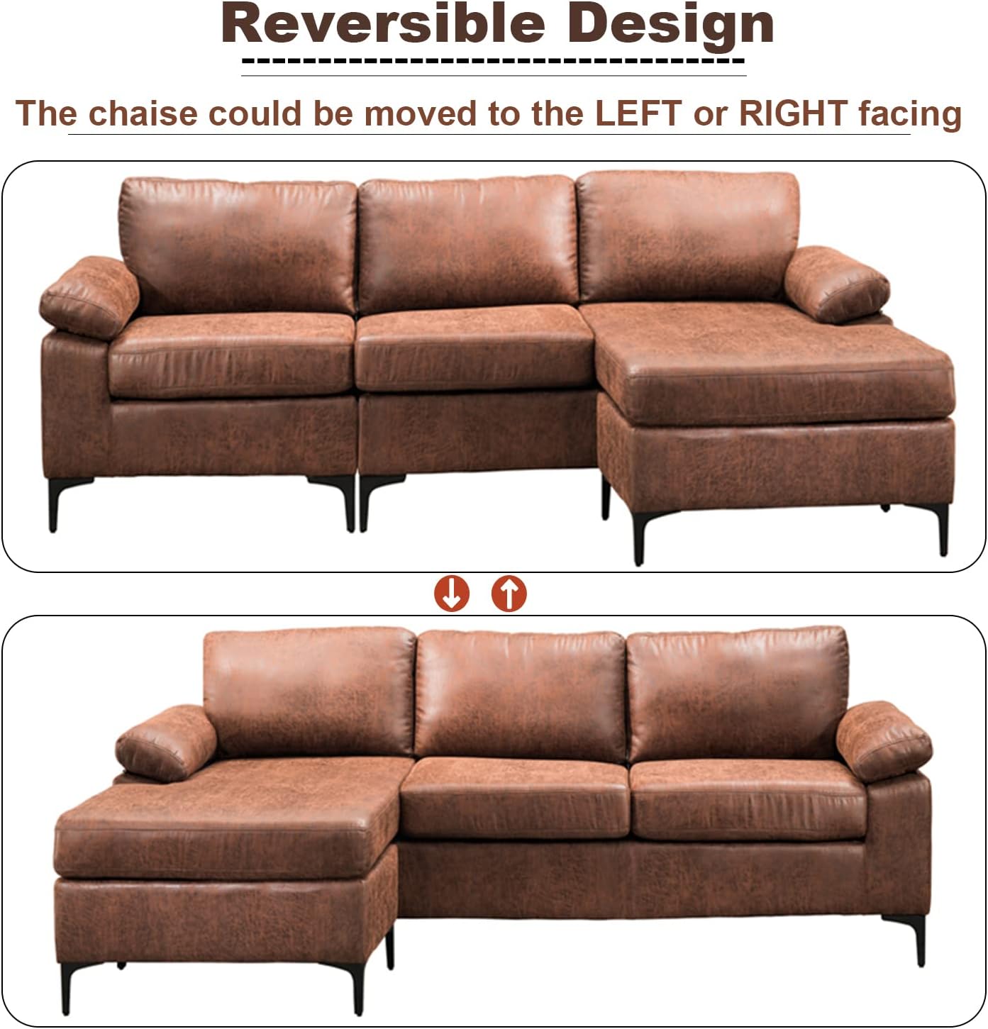 97" Sectional Couch Modern L Shaped Couch Modular Sectional Sofa with Reversible Left Right Chaise for Small Living Room Apartment,Dark Brown Faux Suede