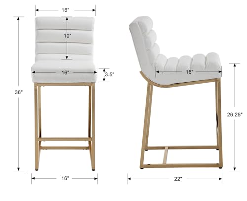 26" H Counter Height Bar Stools Set of 2 with Footrest, Linen Upholstered Kitchen Barstools, Modern Counter Stools for Kitchen Island, Apartment, Counter Bar, Cream