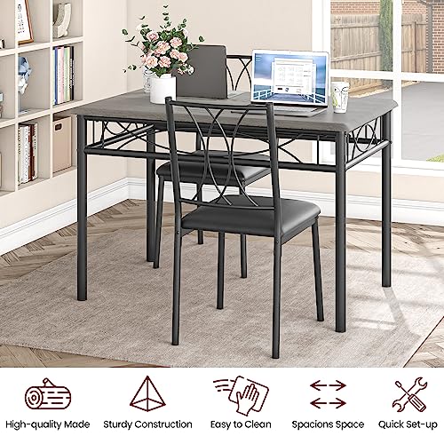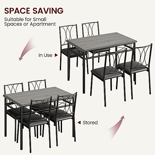 Kitchen Table and Chairs for 4, Dining Table Set for 4, Rectangular Dining Room Table Set with 4 Upholstered Chairs, 5 Piece Kitchen Table Set for Small Space, Apartment, Rustic Gray