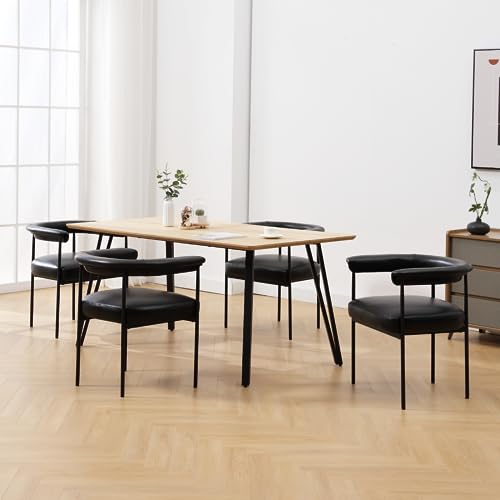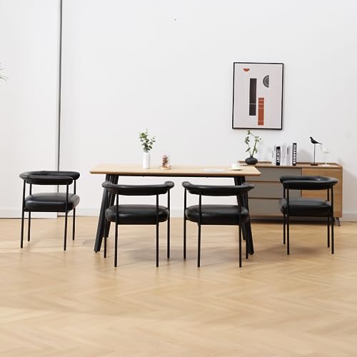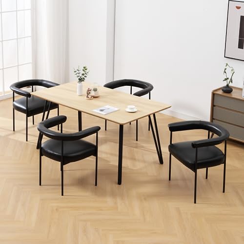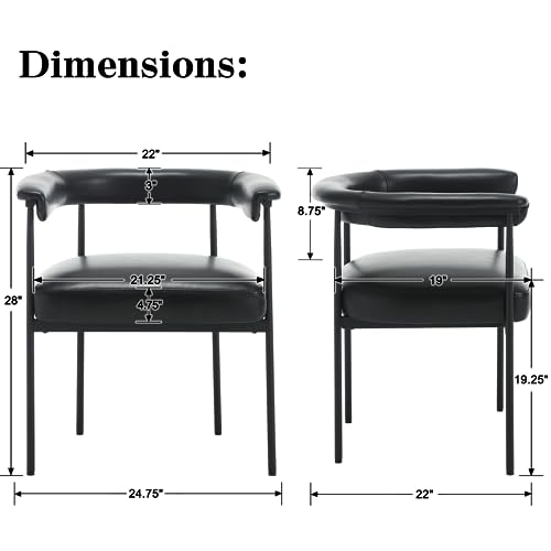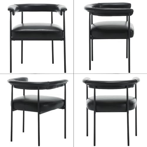LukeAlon PU Leather Dining Chairs Set of 2, Upholstered Open Back Kitchen Chairs with Black Metal Legs Curved Backrest Dinner Chairs Simple Side Chairs for Kitchen Living Room, Brown