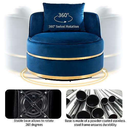Oversized Swivel Chair with Pillow, 360° Rotation Accent Armchair, Velvet Round Barrel Chair with Stainless Steel Base, Cozy Lazy Single Sofa for Living Room Bedroom Office (Green)