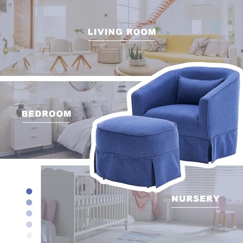 Swivel Accent Chair with Ottoman, 360° Swivel Barrel Chair with Footrest, Upholstered Armchair with Padded Cushion,Comfy Chenille Small Reading Armchair for Living Room, Nursery, Lounge,Office