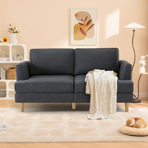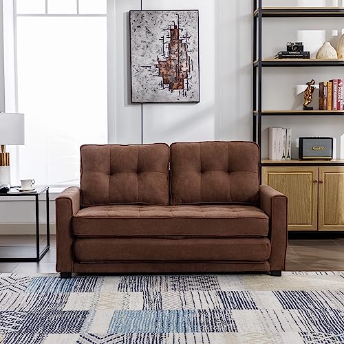 Loveseat Sofa 65" Mid Century Modern Small Couches for Small Spaces Love Seat with 2-3 Seat Upholstered Cushion Sofa Couches for Bedroom Small Couch for Living Room Apartment (Brown)